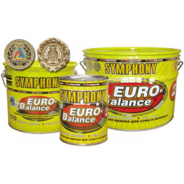 Акрилатная глубоко матовая краска для стен и потолков Симфония Евро-Баланс 2 (Symphony Euro Balance 2), с повышенной укрывистостью и ослепительной белизной. Выдерживает частую влажную уборку (более 3000 циклов). Предназначена для окраски стен и потолков в гостиных, детских комнатах, спальнях и других помещениях, а также во влажных помещениях с высокой эксплуатационной нагрузкой (кухни, коридоры). Сертифицирована также для применения в детских дошкольных, школьных, лечебно-профилактических учреждениях, больницах и т.п. Наносится на бетонные, оштукатуренные, кирпичные, деревянные и другие пористые поверхности, а также обои. гипсокартон, ДСП, ДВП. Можно наносить на новые и ранее окрашенные поверхности. Разбавитель - вода.