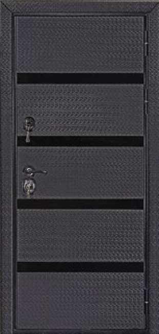 Внешняя отделка - объёмная фрезерованная панель «Бизнес» из МДФ с черным стеклом лакобель t-4 мм, цвет - «Черная мозаика», толщина 16 мм, с гладкими наличниками