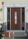 Внешняя отделка - ковка «Фасад», стеклопакет зеркальный 3-хкамерный, объёмная фрезерованная панель «Лацио» из влагостойкой МДФ (пр-во Бельгия) 16 мм, цвет - «Дуб золотой» с черной патиной + лаковое покрытие, тип пленки – «Vinorit» (пр-во Израиль) с фрезерованными наличниками