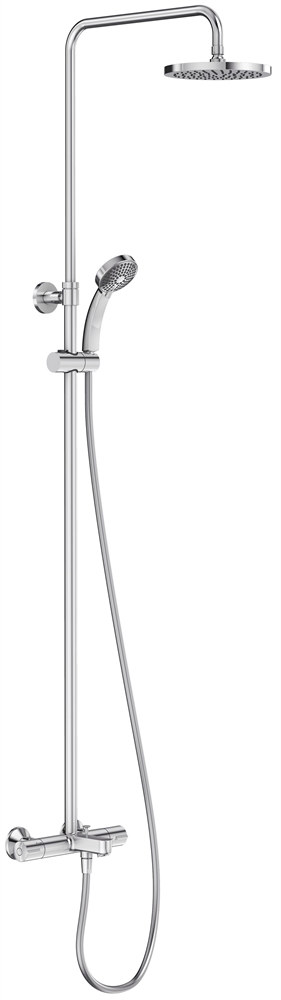 Душевая колонна с термостатическим смесителем и круглым верхним душем.