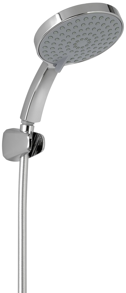 Душевой комплект с трехпозиционным держателем для душа из высококачественного пластика, гибким нескручивающимся шлангом (1,60 м) и 5-ти режимным ручным душем диаметром 140 мм с антиизвестковым покрытием.