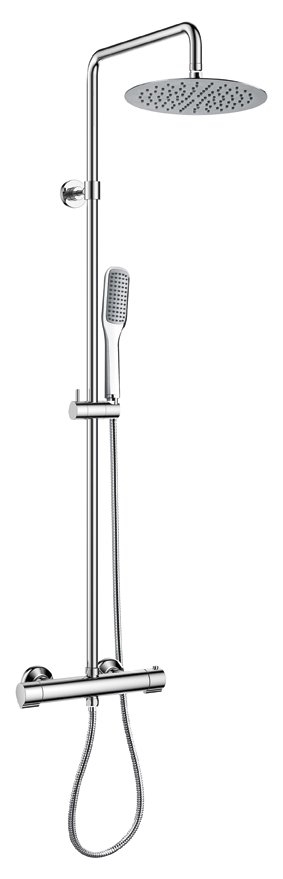 Оснащение: душевая лейка, настенный держатель, кронштейн для верхнего душа, смеситель двухпозиционный термостатический, шланг для душа, дивертор