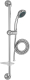 Душевой комплект со штангой 0,75 м, мыльницей, шлангом в двойной металлической оплетке 1,75 м и трехрежимным ручным душем с антиизвестковым покрытием.