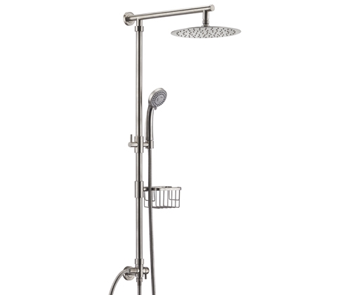 Комплект: Душевая насадка ? 250 мм; 90 форсунок; нержавеющая сталь; Стойка для душа; ? 24мм; Лейка 3-функциональная с системой защиты от известковых отложений; Шланг металлический 1500 мм; подключение к лейке; Шланг металлический 600 мм; подключение к смесителю; Керамический поворотный переключатель; Мыльница металлическая решетка; Регулируемый держатель лейки; Набор для монтажа