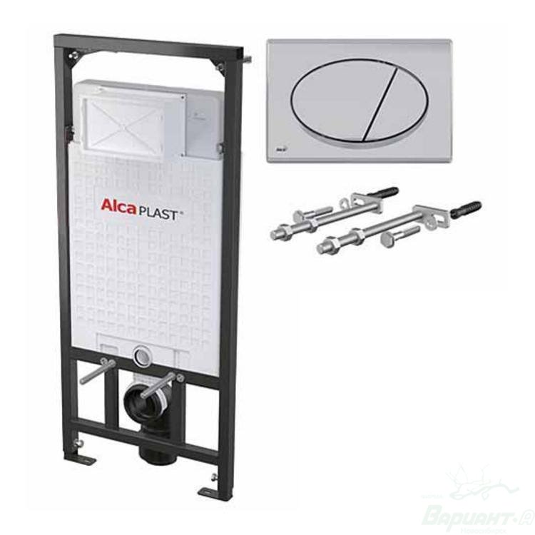 Инсталляция для подвесного унитаза AM101/1120 l, Кнопка для инсталляции хромированная (M071), Комплект креплений,