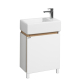 Правосторонняя тумба Эклипс М от AQUATON позволит грамотно организовать небольшой санузел или ванную комнату. Корпус у данной модели комбинированный и изготовлен из текстурированной ДСП в эффектной светлой отделке эбони и из влагостойкой ЛДСП, покрытой глянцевой белой краской. Фасад, выполненный из МДФ, также окрашен в белый глянец. Минималистичный дизайн тумбы подчеркивает отсутствие лицевой фурнитуры. Плавное закрывание распашного фасада-створки обеспечивают петли с доводчиком. Для комплектации тумбы Эклипс М подойдет компактная, но при этом глубокая прямоугольная керамическая раковина Santek Эрис 46.