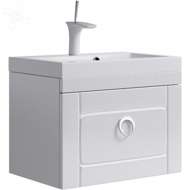 Тумба под раковину Aqwella Инфинити 60 подвесная Белая выдвижным ящиком с хромированной ручкой. Для использования в ванных комнатах с повышенной влажностью.